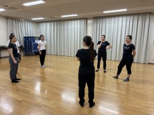 「ダンスパラダイス」照明下見のための練習とビデオ撮影のため、8/30刈谷市北部生涯学習センターのメインホールに集まりました。