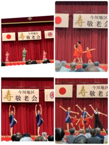 今川町敬老会に出演しました 2025年9月20日 9/7 今川町の敬老会に呼んでいただきました。刈谷教室の幼稚園から中学生の5人で小作品を4つ踊らせていただきました。 たくさんの拍手を頂戴しました。子どもたちの成長の機会をいただきありがとうございました。 敬老会には地区のボランティアで、教室の中学生も会場のお手伝いをしていました。